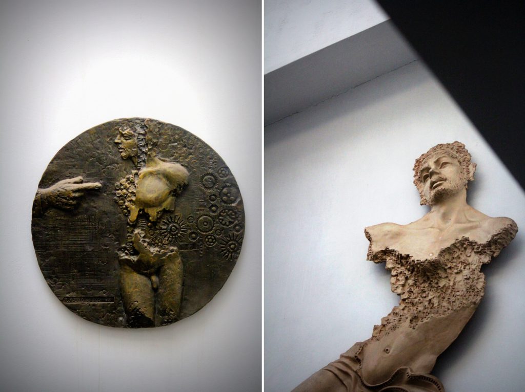 Οι ανθρώπινες μορφές κυριαρχούν και μοιάζουν να ασφυκτιούν μέσα στην ύλη αναζητώντας διέξοδο, σάρκωση, θέωση. Άλλοτε μοιάζουν να γεννιούνται από το άμορφο και σταδιακά να ολοκληρώνονται και σε άλλες περιπτώσεις μοιάζουν να αποδομούνται και να χάνουν τα μέλη τους.