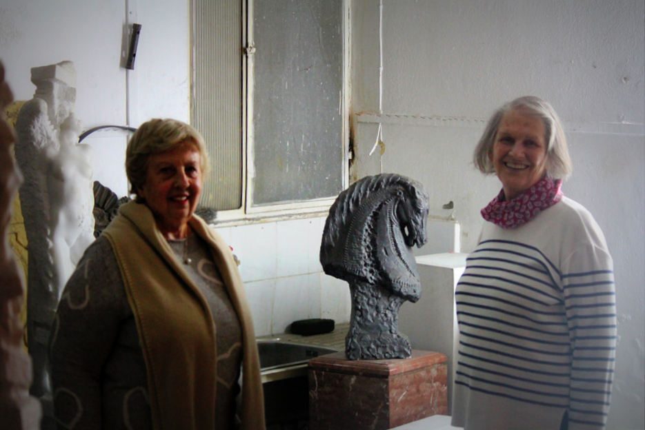 Υβόννη Παπαδολιά [αριστερά] και Χριστίνα Αρμακόλα σε έναν από τους χώρους που εργαζόταν ο γλύπτης
