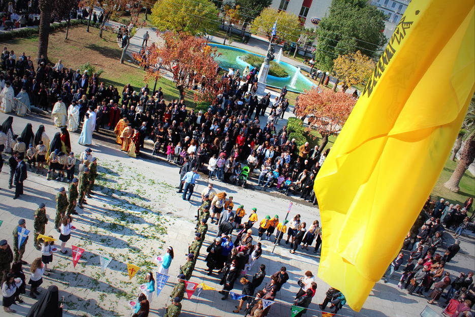 Ενώπιον του Ιερού Ναού του Οσίου Νίκωνος, στο κέντρο της Σπάρτης, και μπροστά